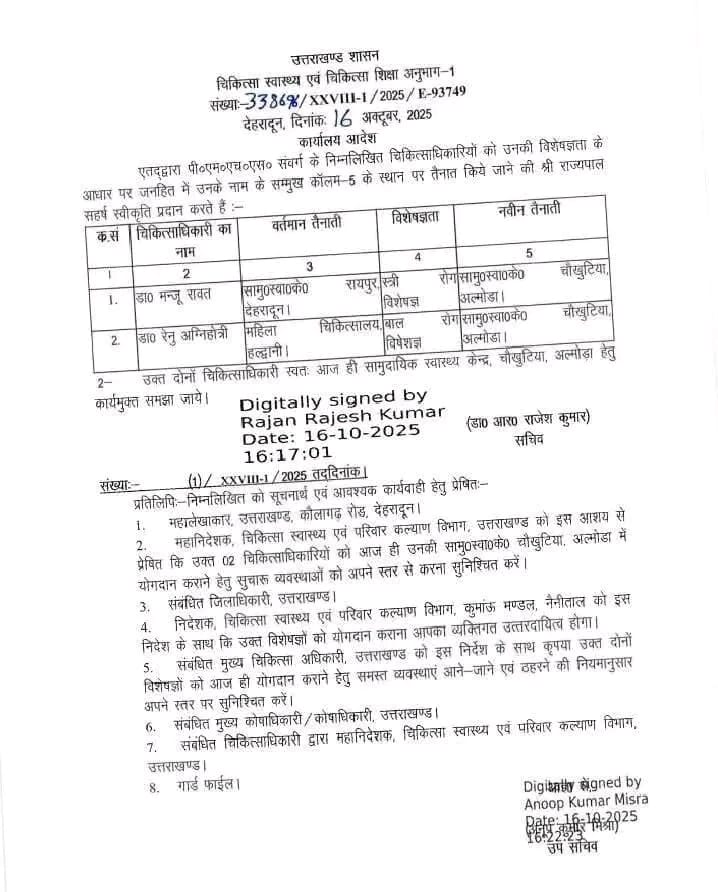 राजनीति भी क्या चीज है, यह किससे क्या-क्या न करवा लेती है। जिस चौखुटिया अस्पताल में डॉक्टरों की तैनाती को लेकर राजनीतिक दलों के बीच हंगामा मचा हुआ था, उसी अस्पताल के लिए शासन द्वारा डॉक्टरों की नियुक्ति के आदेश 16 अक्टूबर 2025 को ही जारी कर दिए गए थे।