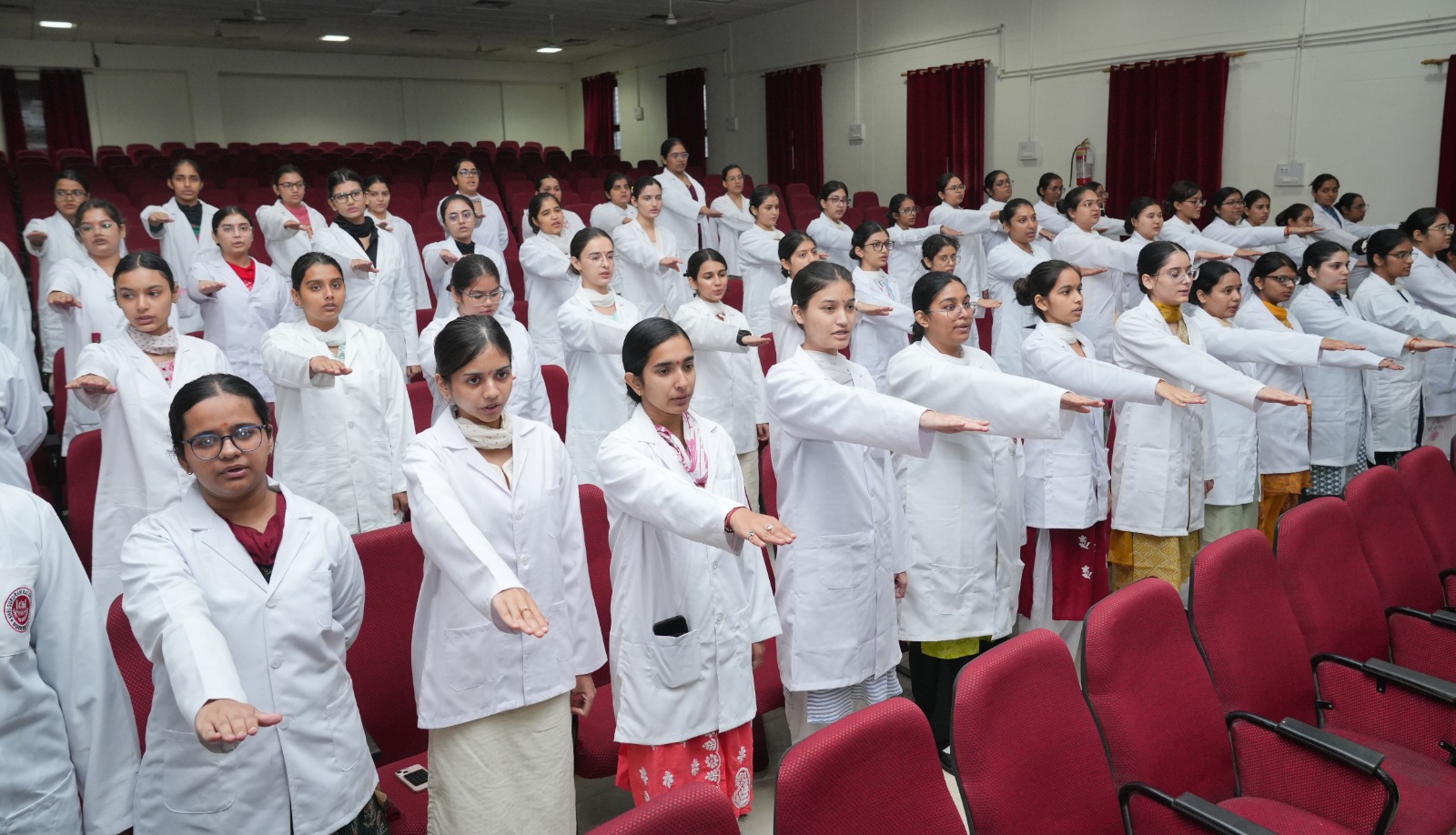 इस वर्ष कुल 134 नव आगुंतक (फ्रेशर) छात्र-छात्राओं ने वाईट कोट सेरेमनी एवं चरक शपथ में भाग लिया। कार्यक्रम का संचालन डॉ. वाणी शर्मा ने किया।