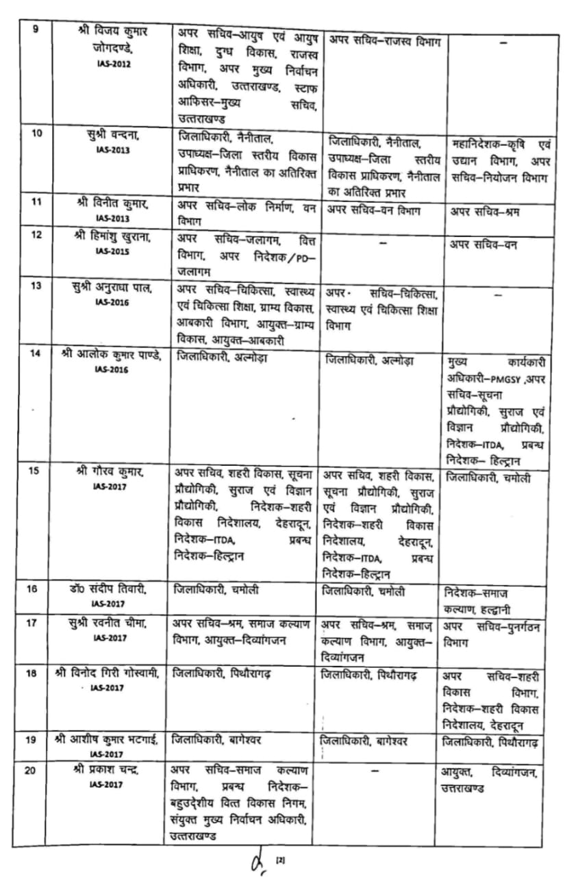उत्तराखंड में बड़ा प्रशासनिक फेरबदल: 22 IAS, 1 IFS, 18 PCS और 3 सचिवालय सेवा अधिकारियों के तबादले