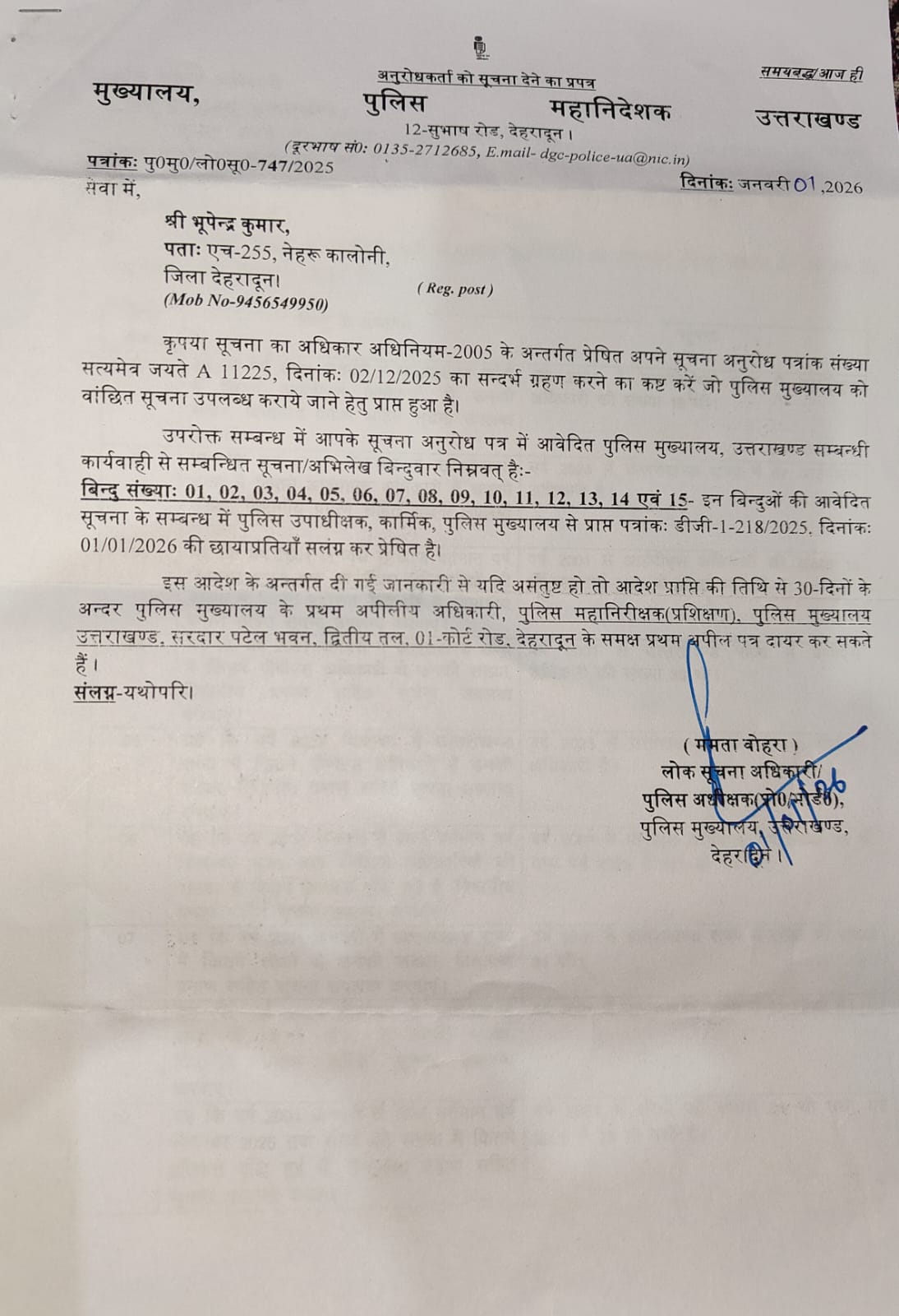 Tags: Citizens RightsDGP Uttarakhand NoticeFIR Investigation IssuesGround Level PolicingHuman Rights Violationlaw and order UttarakhandPolice Investigation DelayPolice Recruitment UttarakhandPolice Reforms IndiaPolice Structural ImbalanceRTI Revelation PoliceSI Cadre CrisisSub Inspector ShortageUttarakhand Human Rights CommissionUttarakhand police